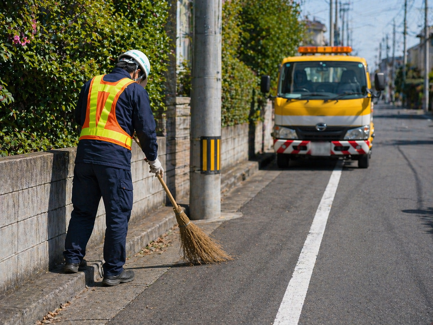 ※作業は通常2名のチーム体制で、安全確認や交通誘導を行いながら進めます。